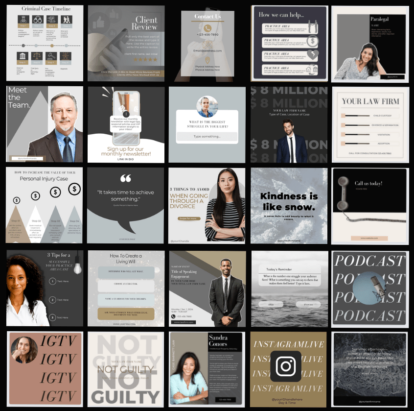 LESS THAN $5.00 PER POST! (with captions written and hashtags provided!) How much money does ONE new client bring into your firm? Imagine spending less than $5 on a social media post that brings in thousands of dollars in revenue for your practice!